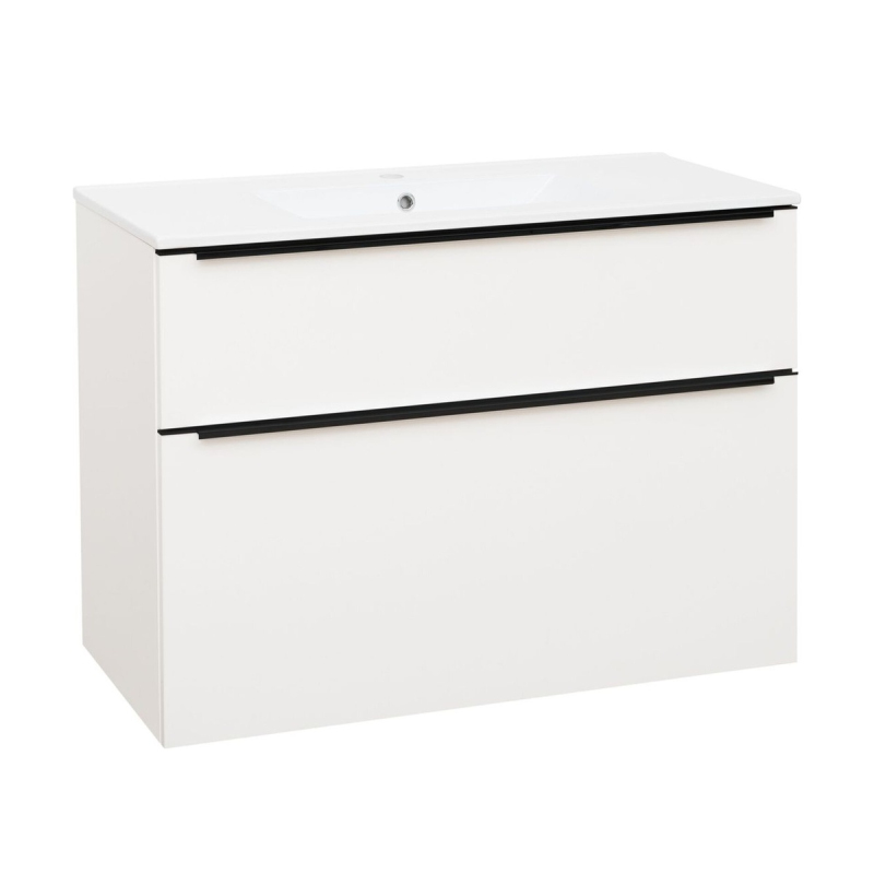 Skříňka EBS Nevio B 101 s umyvadlem slim, černý úchyt, bílá lesk, NEVIOSL101CB