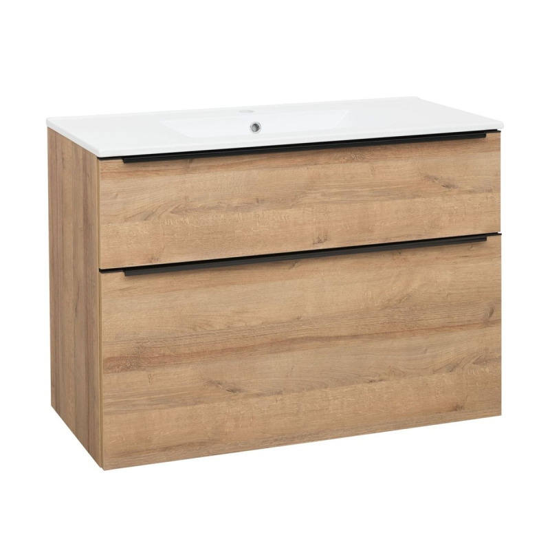 Skříňka EBS Nevio B 101 s umyvadlem slim, černý úchyt, dub Riviera, NEVIOSL101CD