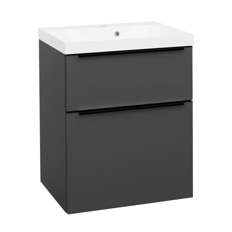 Skříňka EBS Nevio B 61 s umyvadlem, černý úchyt, antracit, NEVIO61CS