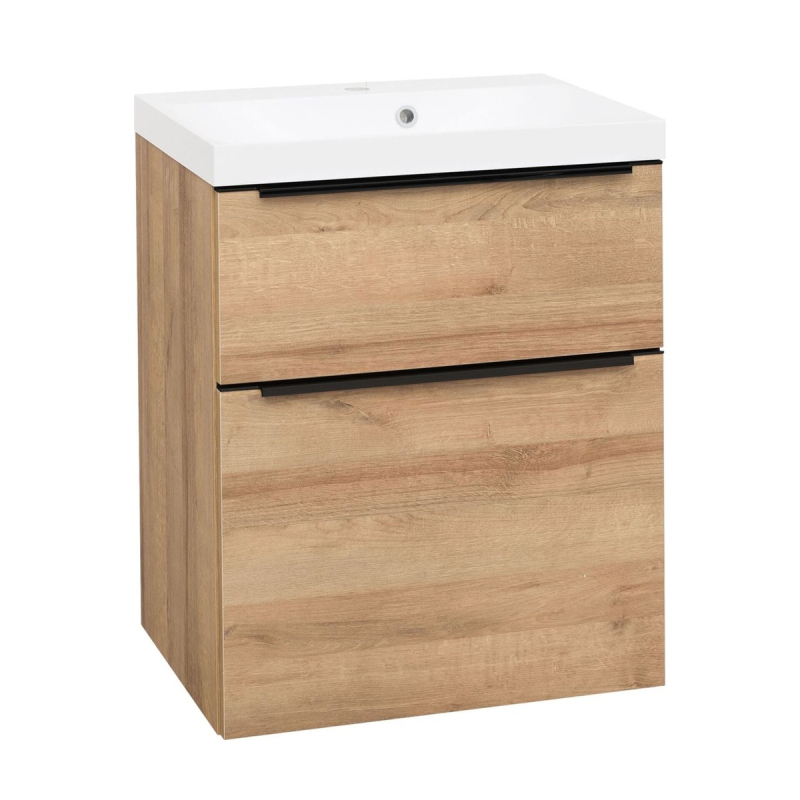 Skříňka EBS Nevio B 61 s umyvadlem, černý úchyt, dub Riviera, NEVIO61CD