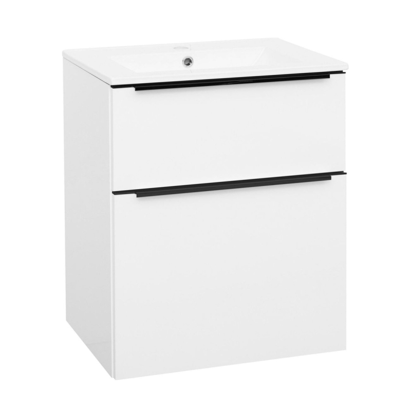 Skříňka EBS Nevio B 61 s umyvadlem slim, černý úchyt, bílá lesk, NEVIOSL61CB