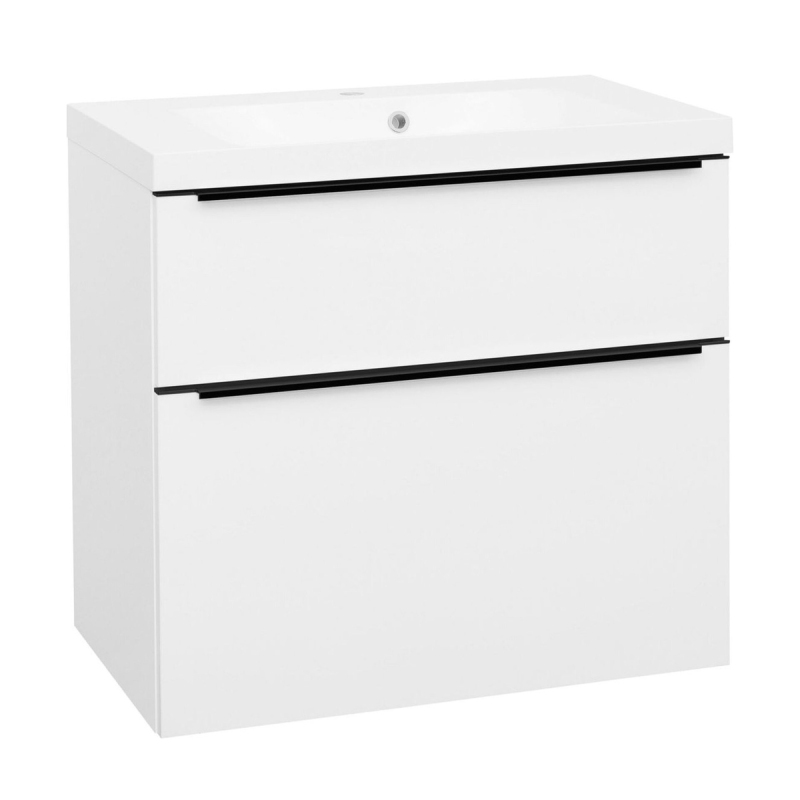 Skříňka EBS Nevio B 81 s umyvadlem, černý úchyt, bílá lesk, NEVIO81CB