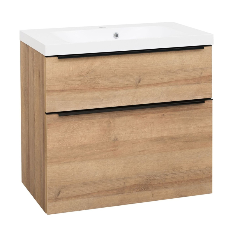 Skříňka EBS Nevio B 81 s umyvadlem, černý úchyt, dub Riviera, NEVIO81CD
