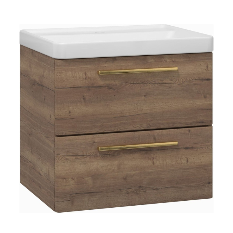 Skříňka EBS Urban 61 s umyvadlem, dub Halifax/madlo zlatá k artáčovaná, URBAN60DHZ