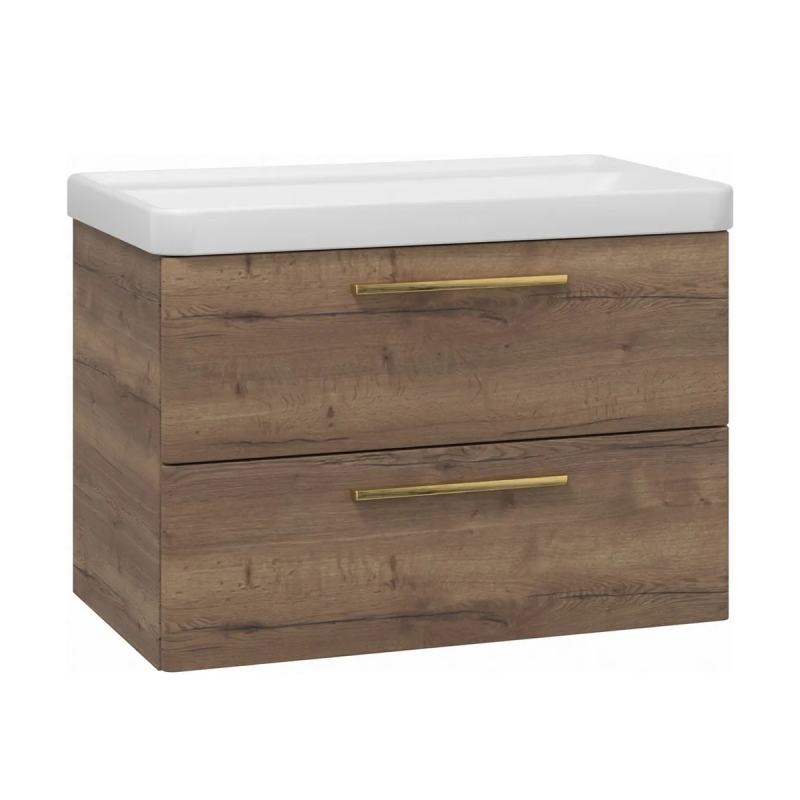Skříňka EBS Urban 81 s umyvadlem, dub Halifax/madlo zlatá kartáčovaná, URBAN80DHZ