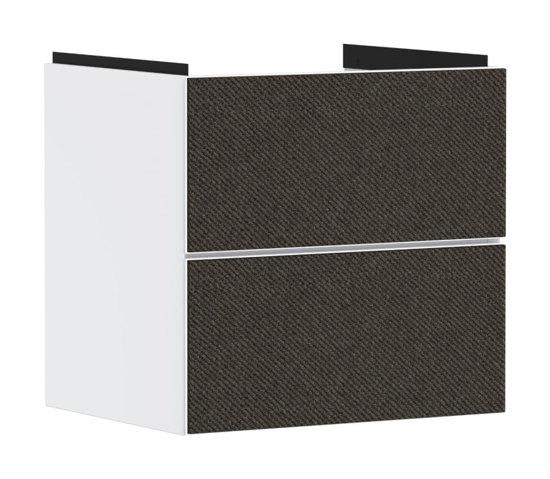 Závěsná skříňka pod umyvadlo bez umyvadla v barevném provedení bílá matná s matným povrchem o rozměru 58x57,5x47,5 cm. S povrchem z MDF desky S plnovýsuvem.