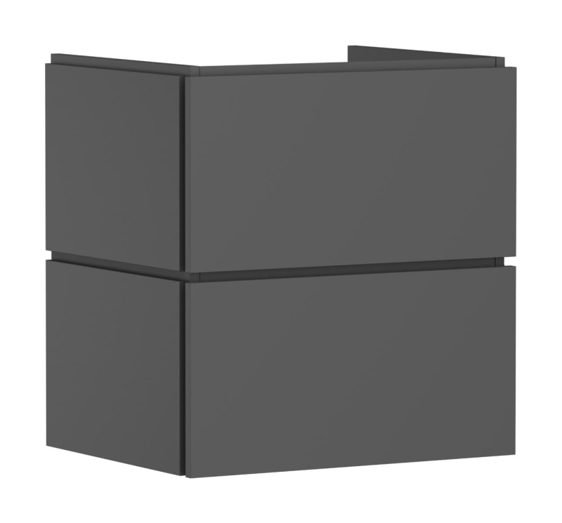 Závěsná skříňka pod umyvadlo bez umyvadla v barevném provedení břidlicová matná šedá s matným povrchem o rozměru 58x62x47 cm. S plnovýsuvem.