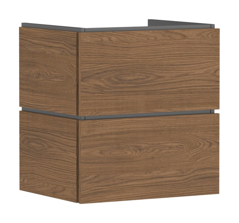 Závěsná skříňka pod umyvadlo bez umyvadla v barevném provedení kašmírový dub o rozměru 58x62x47 cm. S plnovýsuvem.
