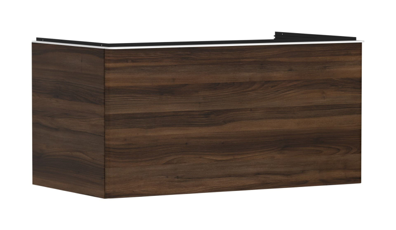 Závěsná skříňka pod umyvadlo pod desku v barevném provedení tmavý ořech o rozměru 98x49,5x55 cm. S povrchem z MDF desky. Bez umyvadla