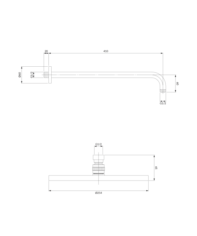 SLIMLINE | dešťová sprcha s ramenem, ø25 cm