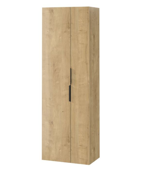 Multifunkční koupelnový sloupek vám umožní uložit ručníky a čisticí prostředky, ale to není vše. Díky nastavitelným policím se do něj vejde vysoké domácí příslušenství, jako je mop s kbelíkem nebo žehlicí prkno. Čelo a korpus skříně jsou vyrobeny z laminované dřevotřísky. Dveře jsou vybaveny systémem "soft close".