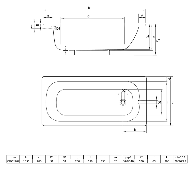 Smaltovaná vana 105x70cm, bílá V105X70P 58412