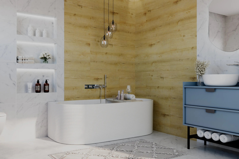 SPC panely se dají velmi snadno řezat na libovolné rozměry a lze je nalepit na jakýkoliv srovnaný povrch, čehož se využívá u umakartových bytových jader, nebo pro instalaci přímo na starý keramický obklad. Navíc SPC obklad vytváří bezešvé povrchy, který se dobře udržuje. Pro instalaci těchto obkladových panelů lze vybrat i z naší široké nabídky dokončovacích profilů, které jsou určeny k těmto SPC panelům.