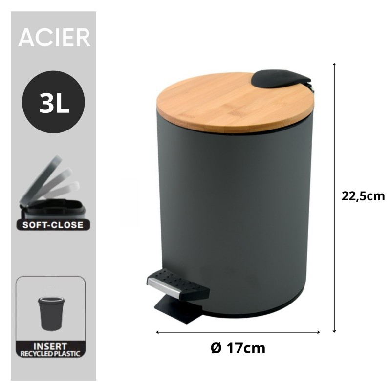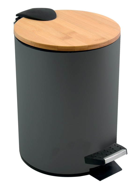 Spirella pedálový odpadkový koš ADONIS tmavě šedá ocel bambusové víko 3 L 10.00003