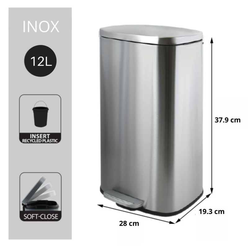 Spirella pedálový odpadkový koš AKIRA kartáčovaná nerez ocel soft-close 12 L 10.21564