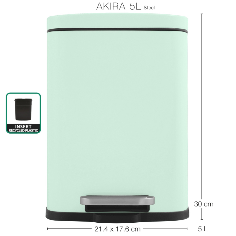 Spirella pedálový odpadkový koš AKIRA matná ledově zelená ocel 5 L 10.20813