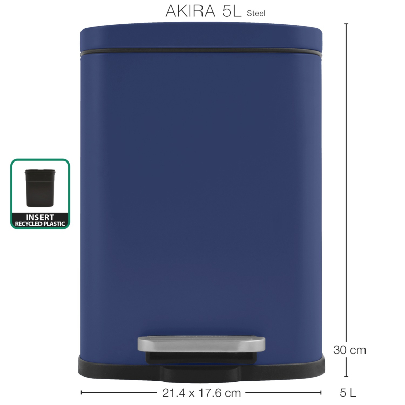 Spirella pedálový odpadkový koš AKIRA matná modrá ocel 5 L 10.20821
