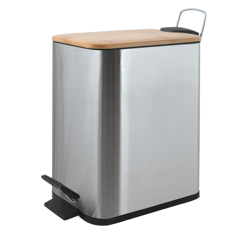 Spirella pedálový odpadkový koš ERIK kartáčovaná nerez ocel bambusové víko 5 L 10.22582