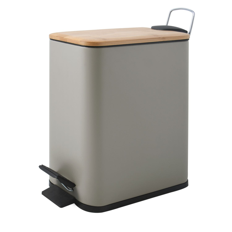 Spirella pedálový odpadkový koš ERIK šedo-hnědá ocel bambusové víko 5 L 10.22583