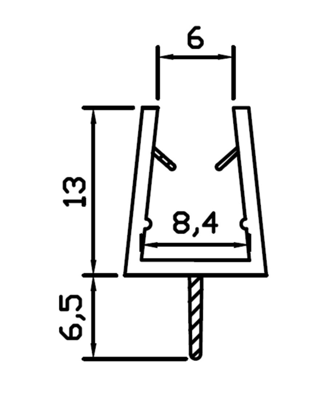 Spodní silikonový těsnící profil, na sklo 6-8mm, délka 1 bm