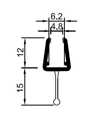 Spodní silikonový těsnící profil "s praporkem", na sklo 6-8mm, délka 1 bm
