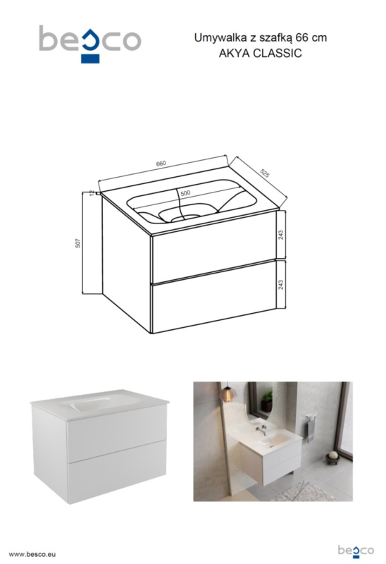 Populární elegantní design, kvalitní zpracování, to je naše nová série AKYA CLASSIC. Součástí šuplíků jsou panty s otvíráním šuplíků push-to-open (zatlačením na šuplík ho otevřete, nebo zavřete). Skříňky se dodávají včetně elegantního umyvadla z litého mramoru a můžete si je objednat se 3 barvami click-clack výpustí (chrom, bílá a černá matná). Možnost dokoupit boční skříňku a zrcadlo ve stejné barvě.
