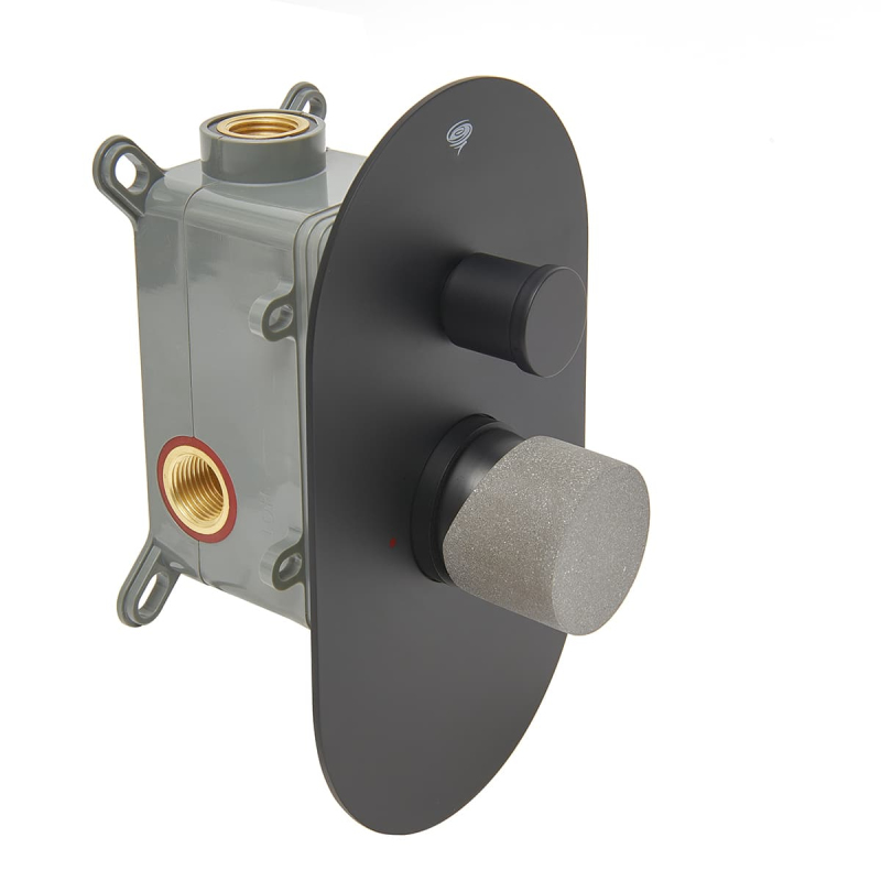- Barva a design: Matný černý povrch, páka v designu betonu