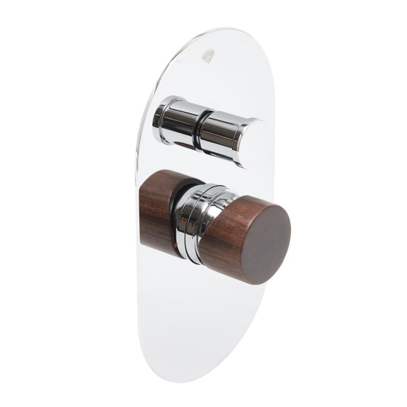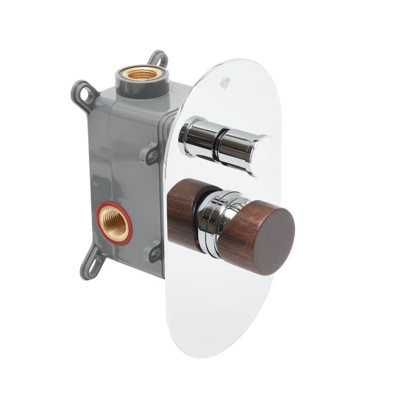 Páková podomítková Sprchová a vanová baterie včetně podomítkového tělesa. V barevném provedení tmavé dřevo. V barevném provedení lesk.