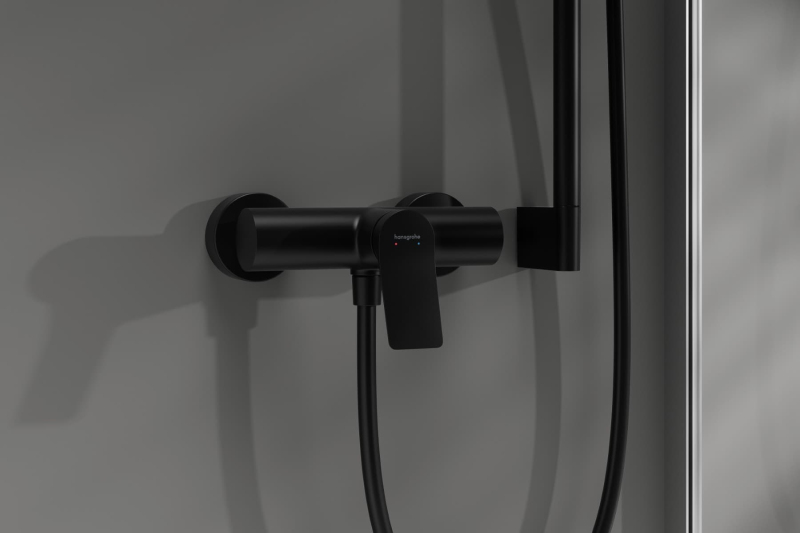 Páková nástěnná sprchová baterie bez sprchového setu v černém matném provedení Rozteč baterie 150 mm. S matným povrchem