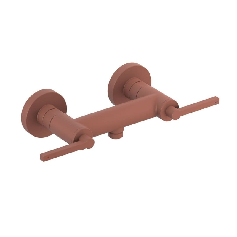 Kohoutková nástěnná sprchová baterie bez sprchového setu v barevném provedení matná cihlová. Průtok je 21 litrů/minutu.. Rozteč baterie 150 mm. S matným povrchem.