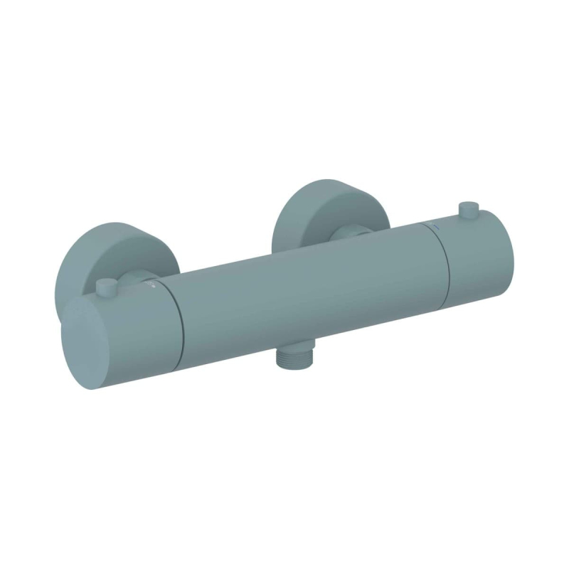 Termostatická nástěnná sprchová baterie bez sprchového setu v barevném provedení matná petrolejová. Rozteč baterie 150 mm. S matným povrchem.