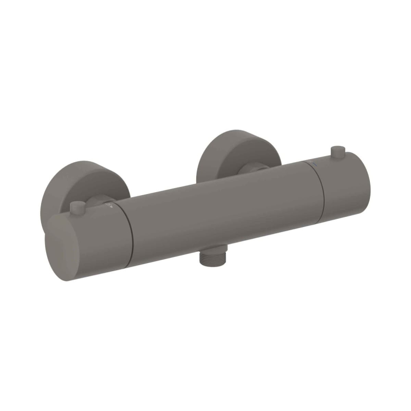 Termostatická nástěnná sprchová baterie bez sprchového setu v barevném provedení matná šedá. Rozteč baterie 150 mm. S matným povrchem.