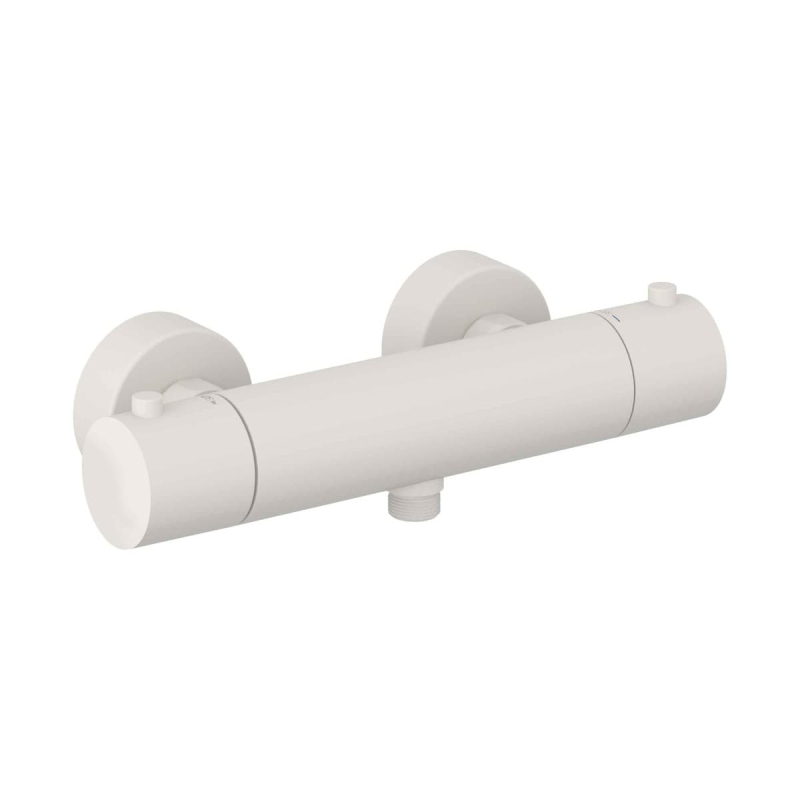 Termostatická nástěnná sprchová baterie bez sprchového setu v barevném provedení matná světle šedá. Rozteč baterie 150 mm. S matným povrchem.