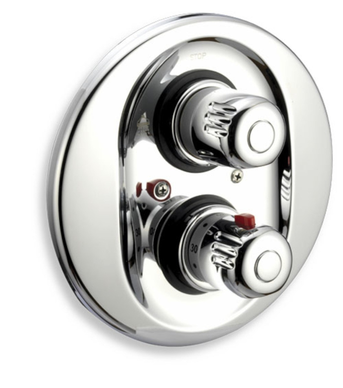 Termostatická podomítková vanová baterie včetně podomítkového tělesa. V chromovém provedení.