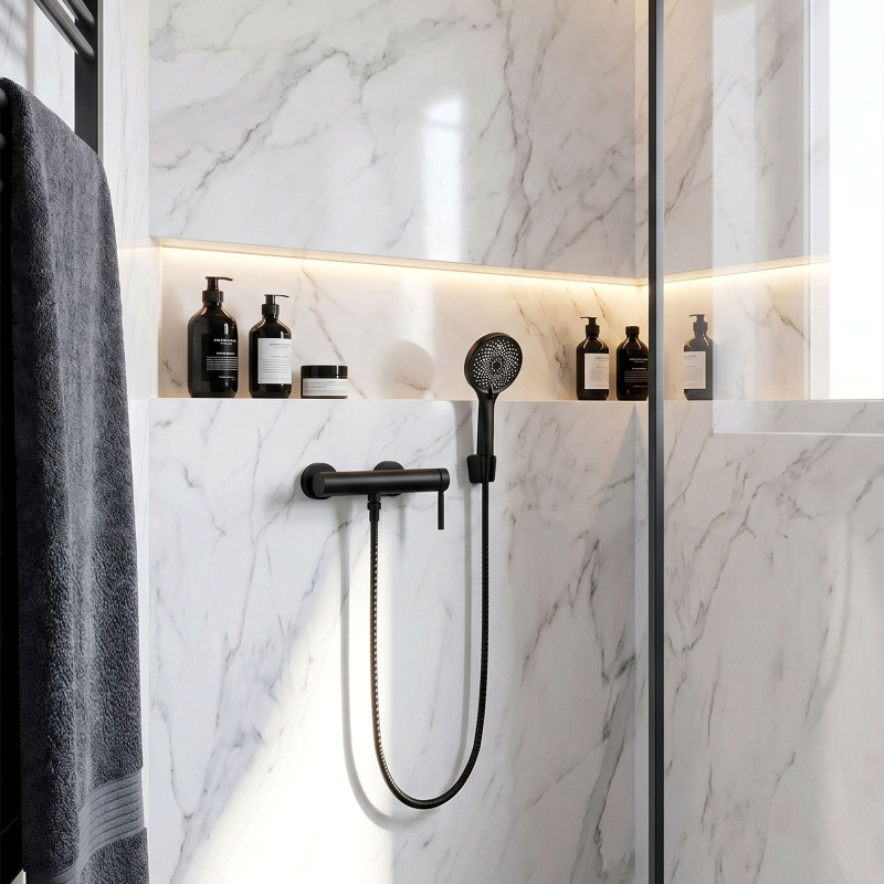 Hledáte výrazný prvek do své sprchové zóny? Podívejte se na sprchovou baterii Rea Rivo v provedení matná černá. Tmavé odstíny jsou absolutním trendem, který skvěle vyniká v loftových a industriálních interiérech, kde dominují beton, dřevo a sklo. Stejně dobře tento model doplní minimalistické a moderní prostory, kde vytvoří zajímavý kontrast ke světlým obkladům a dodá koupelně výrazný městský charakter.Technologie Electroplating – inovativní elektrochemický proces galvanizace, který zajišťuje mimořádně hladký a vizuálně bezchybný povrch.Multifunkční sprchová hlavice – s nastavitelnými režimy proudu vody pro maximální přizpůsobení.Praktická funkce bidetu – integrovaná ve sprchové hlavici pro vyšší komfort každodenní hygieny.Klasická hadice o délce 150 cm – poskytuje dostatečnou volnost pohybu a usnadňuje oplachování sprchového koutu.Hluboká matná černá – výrazné provedení pro milovníky moderního designu. Volbou sprchové baterie Rivo získáte stylové a funkční řešení, které kompletně promění vaši koupelnu. Elektrochemická povrchová úprava zaručuje elegantní vzhled v každém osvětlení. Díky praktickým funkcím je každodenní hygiena jednodušší a produkt dokonale zapadá do moderních trendů.