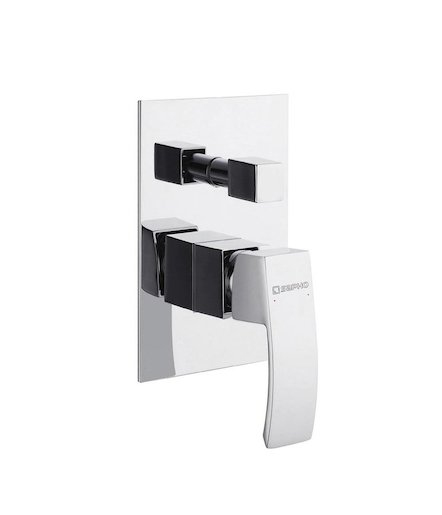 Páková podomítková sprchová baterie včetně podomítkového tělesa. V hranatém designu. V chromovém provedení.