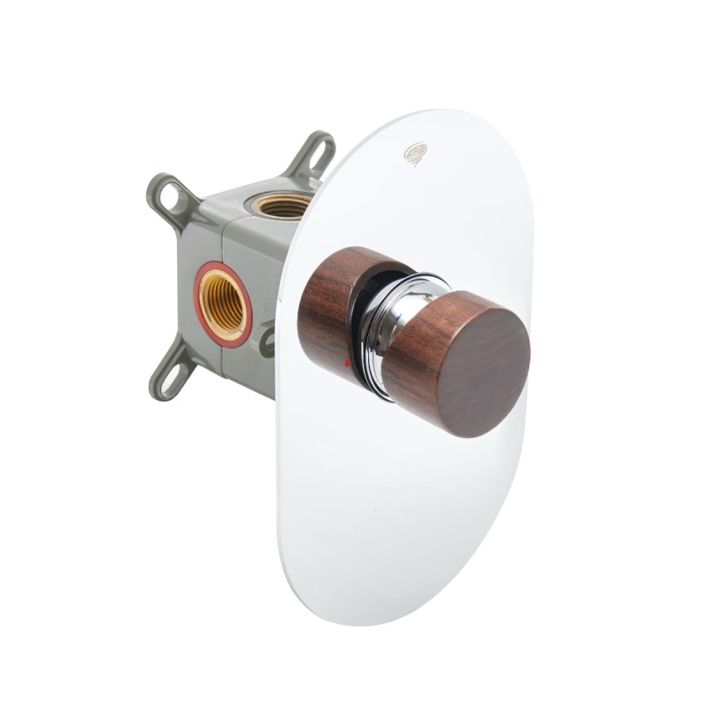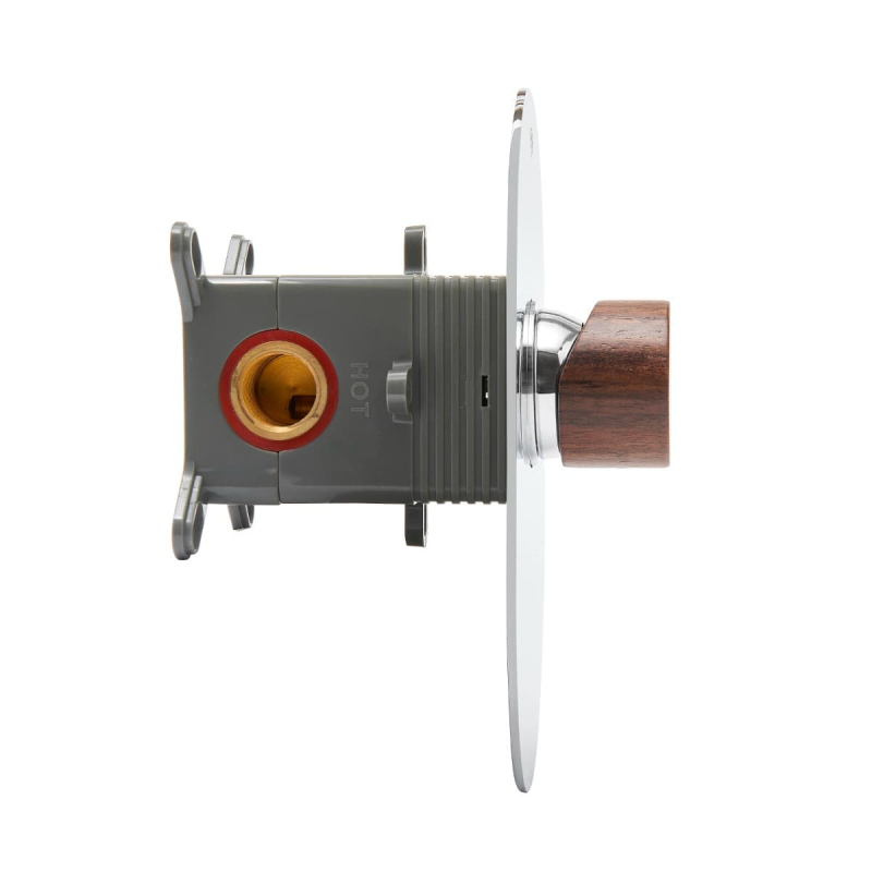 Podomítková páková sprchová baterie SAT Fusion v designu tmavého dřeva zaujme nejen nadčasovým vzhledem, ale i kvalitním mosazným provedením.
