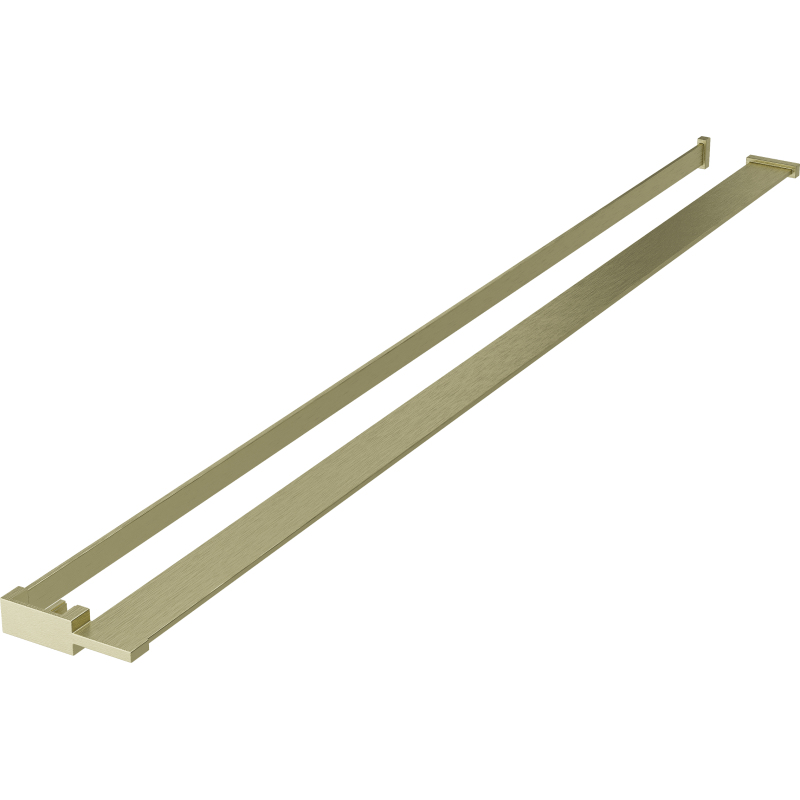 Specifikace produktu: Materiál: Hliník Barva: Kartáčované zlato Šířka: 12,9 cm Výška: 3,2 cm Max. délka police: 140 cm Možnost zkrácení police Libovolná montážní výška