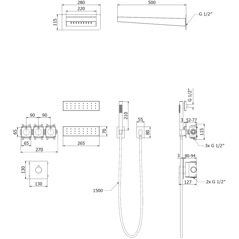 Specifikace produktu: Materiál: Nerezová ocel Barva: Černá Počet funkcí: 3 Sprchová hlavice Hadice s nerezovým krytem 150 cm Dvě skryté boční trysky Sprchová hlavice Rain Silikonové trysky s úpravou proti vodnímu kameni usnadňují odstraňování vodního kamene Bez možnosti regulace tlaku vody, zapínání a vypínání proudu pomocí funkce ON-OFF