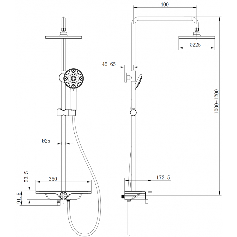 Specifikace produktu: Materiál sloupku: Nerezová ocel Povrchová úprava sloupku: Černá Výška: 1000-1200 mm Šířka sloupku: ø25 mm Vzdálenost od zdi: 400 mm Posuvný držák ručního ovladače Materiál sprchové hlavice: ABS Povrchová úprava sprchové hlavice: Černá Velikost sprchové hlavice: ø225 mm Materiál ručního ovladače: ABS Povrchová úprava ručního ovladače: Černá Počet funkcí: 3 Materiál hadice: PVC Povrchová úprava hadice: Černá Délka hadice: 150 cm Mosazné koncovky Hladký povrch usnadňuje údržbu Otočné koncovky zabraňují kroucení Pružný materiál odolný vůči natahování a ohýbání Materiál baterie: Mosazné tělo Povrchová úprava baterie: Černá Počet funkcí: 3 Výpust umístěná ve spodní části baterie Praktická polička na kosmetiku Bez možnosti regulace tlaku vody, zapínání a vypínání proudu funkcí ON-OFF