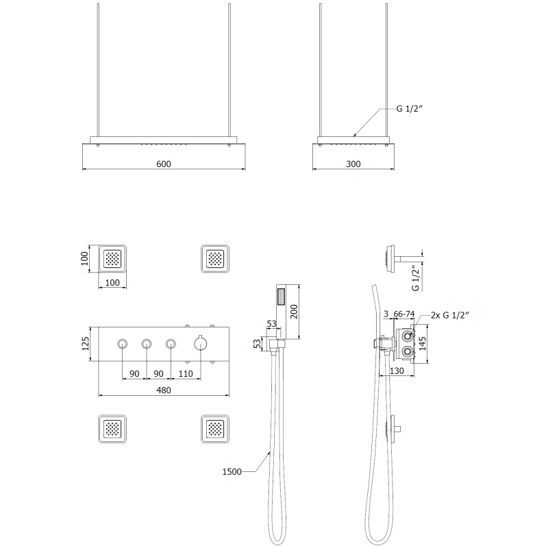 Specifikace produktu: Materiál: Nerezová ocel Barva: Chrom Počet funkcí: 3 Sprchová hlavice Hadice s nerezovým krytem 150 cm Čtyři skryté boční trysky Sprchová hlavice Rain s dešťovým a kaskádovým proudem Silikonové trysky Anti-Calc usnadňují odstraňování vodního kamene Bez možnosti regulace tlaku vody, zapínání a vypínání proudu pomocí funkce ON-OFF
