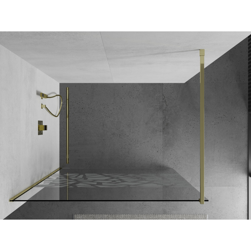 Sprchová stěna Mexen Kioto 100x200 cm, transparent/bílý vzor 8, zlatá 800-100-101-50-85