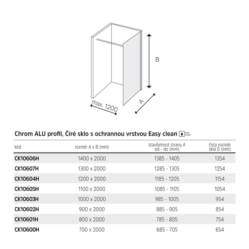 Hliníkové profily v barvě chrom, sklo Čiré, síla skla 8 mm, WALK IN, rozměr 700 mm, výška 2000 mm.. Zobrazit více