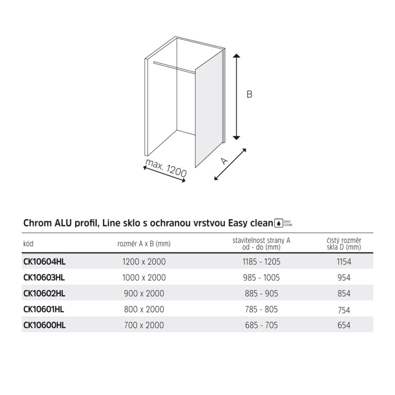 Hliníkové profily v barvě chrom, sklo Line, síla skla 8 mm, WALK IN, rozměr 700 mm, výška 2000 mm.. Zobrazit více