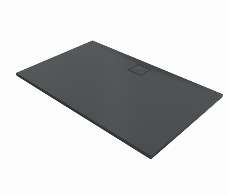 Sprchová vanička z litého mramoru v antracitovém matném provedení o rozměru 150x90 cm. Balení bez sifonu a nožiček.