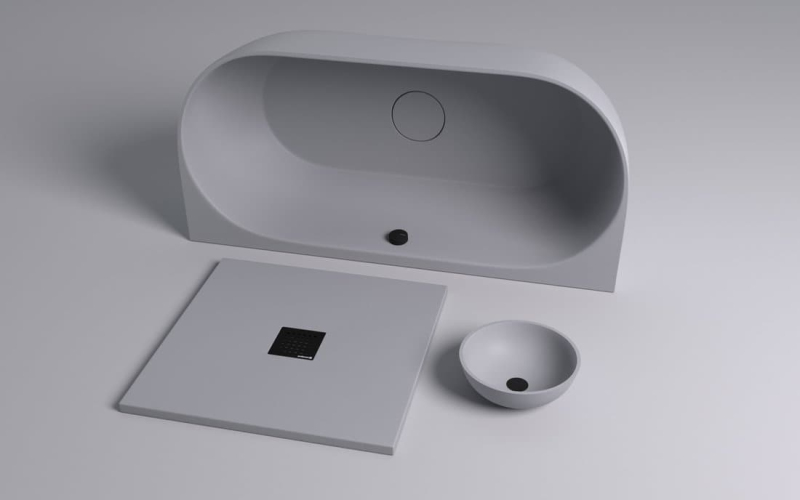 Sprchová vanička z litého mramoru v šedé barvě o rozměru 130x90 cm. Balení bez sifonu a nožiček.