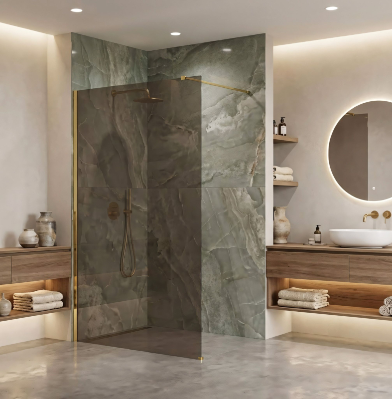 Vneste do své koupelny atmosféru teplého luxusu díky walk-in sprchové stěně Rea Flexi v jedinečné konfiguraci: sklo v odstínu Kouřově Hnědá a profil v barvě Lesklé Zlato. Toto harmonické spojení ztmavené hnědé tabule a lesklých detailů vytváří mimořádně elegantní a útulný prostor. Konstrukce z pevného 8mm tvrzeného skla zajišťuje stabilitu a bezpečné používání.8 mm tvrzené sklo (Kouřově Hnědá) – odolná tabule s teplým hnědým tónem, která dodá interiéru útulnost, zajistí diskrétnost a skvěle ladí se zlatými doplňky.Hliníkový profil Lesklé Zlato – efektní lesklá úprava nástěnného profilu a ramene, která krásně odráží světlo a je výraznou ozdobou koupelny.Povrch Easy Clean – neviditelná hydrofobní bariéra, která usnadňuje stékání vody a chrání před usazeninami mýdla a vodního kamene.Stabilizační rameno 120 cm, zkracovatelné – možnost úpravy na míru pro dokonalé přizpůsobení prostoru.Univerzální montáž – montáž vpravo i vlevo, na vaničku nebo přímo na dlažbu s odtokem.Konstrukce Walk-In – moderní otevřený vstup bez dveří, který zajišťuje volnost pohybu a podtrhuje vzdušnost koupelny.Sprchová stěna Rea Flexi je volbou pro ty, kteří oceňují nadčasovou klasiku v moderním provedení. Duo lesklého zlata a hnědé vytváří vytříbenou kompozici, která interiér příjemně zateplí. Díky kvalitním materiálům a úpravě Easy Clean je produkt nejen krásný, ale i praktický.