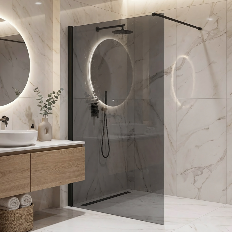 Sníte o koupelně v moderním, industriálním stylu? Zvolte sprchovou zástěnu walk-in Rea Flexi s efektním sklem v odstínu Šedá. Jde o výraznou kombinaci masivního profilu v barvě Černá Mat s tónovanou šedou skleněnou tabulí, která dodá interiéru eleganci a zajistí soukromí. Konstrukce z bezpečného 8mm tvrzeného skla zaručuje odolnost a bezpečné používání.Tvrzené sklo 8 mm (Šedé) – silné, bezpečné sklo s elegantním šedým zabarvením, které vnáší do koupelny moderní atmosféru a zvyšuje míru soukromí.Easy Clean vrstva – speciální hydrofobní povrch, který usnadňuje stékání vody a chrání sklo před usazováním vodního kamene a nečistot.Hliníkový profil Černá Mat – stylový, matný nástěnný profil v černé barvě, ideální pro loftové interiéry.Vzpěra 120 cm s možností zkrácení – horní stabilizační rameno lze snadno zkrátit a přesně přizpůsobit hloubku sprchového koutu rozměrům místnosti.Univerzální montáž – zástěnu lze instalovat na pravou i levou stranu, na sprchovou vaničku nebo přímo na podlahu s liniovým žlabem.Walk-In konstrukce – minimalistický, otevřený vstup bez pohyblivých prvků, který zajišťuje pohodlné a bezporuchové používání po mnoho let.Sprchová zástěna Rea Flexi je ideální volbou pro ty, kteří oceňují design i funkčnost. Šedá skleněná tabule v kombinaci s černými detaily vytváří luxusní a moderní sprchovou zónu. Díky vrstvě Easy Clean a kvalitním materiálům je tento výrobek nejen estetický, ale také snadný na údržbu.