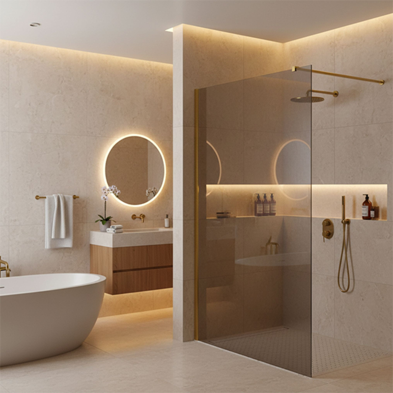 Podtrhněte jedinečný charakter své koupelny volbou walk-in sprchové zástěny Rea Flexi se šedým sklem a profily v barvě zlatá lesk. Toto vytříbené spojení tónované grafitové tabule s lesklou úpravou dodá interiéru moderní eleganci. Konstrukce z pevného 8mm tvrzeného skla zaručuje bezpečnost a dlouhou životnost.8mm tvrzené sklo (šedé) – odolná tabule s hlubokým šedým tónem, která vytváří intimnější atmosféru, zajišťuje soukromí a je moderním pozadím pro lesklé detaily.Hliníkový profil zlatá lesk – efektní zrcadlová povrchová úprava nástěnného profilu, která krásně odráží světlo a kontrastuje s tmavším sklem.Povlak Easy Clean – moderní hydrofobní vrstva, díky které voda rychleji stéká a omezuje usazování mýdla a vodního kamene.Stabilizační vzpěra 120 cm s regulací – rameno ve zlatém lesku, zkracovatelné na míru pro přesné nastavení hloubky sprchové zóny.Univerzální montáž – instalace vpravo nebo vlevo, na vaničku nebo přímo na dlažbu se žlabem.Konstrukce Walk-In – minimalistický otevřený vstup bez dveří a prahů, pro maximální pohodlí a snadný přístup.Sprchová zástěna Rea Flexi Gold Gloss Grey je volbou pro ty, kteří hledají neotřelý design. Kombinace šedého skla a lesklého zlata vytváří luxusní a výrazný efekt. Díky povlaku Easy Clean a kvalitním materiálům spojuje dekorativní vzhled s praktičností.