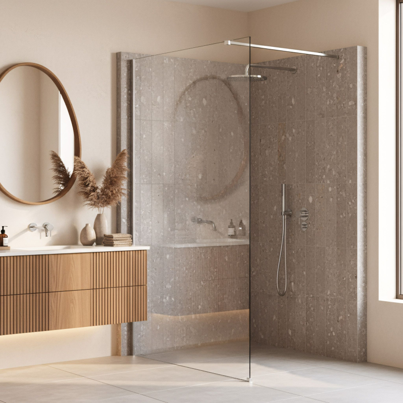 Vytvořte moderní a prostornou sprchovou zónu pomocí walk-in sprchové zástěny Rea Flexi. Tento model s tabulí z transparentního skla a profilem v barvě chrom kombinuje minimalistický design s maximální funkčností a opticky zvětšuje prostor. Vyrobena z tlustého kaleného skla 8 mm a dokončena elegantním hliníkovým profilem, zaručuje pevnost a bezchybný vzhled.Kalené sklo 8 mm – pevné a bezpečné sklo zajišťuje stabilitu konstrukce a bezpečnost při používání.Povrch Easy Clean – hydrofobní vrstva na jedné straně skla, která usnadňuje čištění a snižuje usazování vodního kamene.Hliníkový chromový profil – elegantní nástěnný profil v lesklém chromovém provedení, stabilizuje konstrukci.120 cm výztuha s možností zkrácení – horní stabilizační rameno mezi zástěnou a stěnou, snadno zkracovatelné na potřebnou délku.Univerzální montáž – možné provedení vpravo i vlevo, na vaničku nebo přímo na dlažbu.Walk-In konstrukce – otevřený design pro snadný vstup a moderní vzhled koupelny.Walk-in sprchová zástěna Rea Flexi je skvělou volbou pro ty, kdo ocení jednoduchost a pohodlí. Díky kvalitním materiálům, jako je 8 mm kalené sklo a povrch Easy Clean, je to praktické a estetické řešení. Séria Flexi je k dispozici i v dalších barvách profilů a s hnědým nebo šedým sklem.